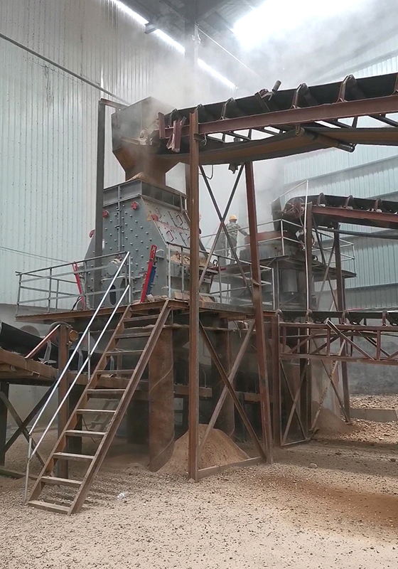 4、物料進入可逆式制砂機破碎出0-5mm的機制砂,輸送至振動篩。