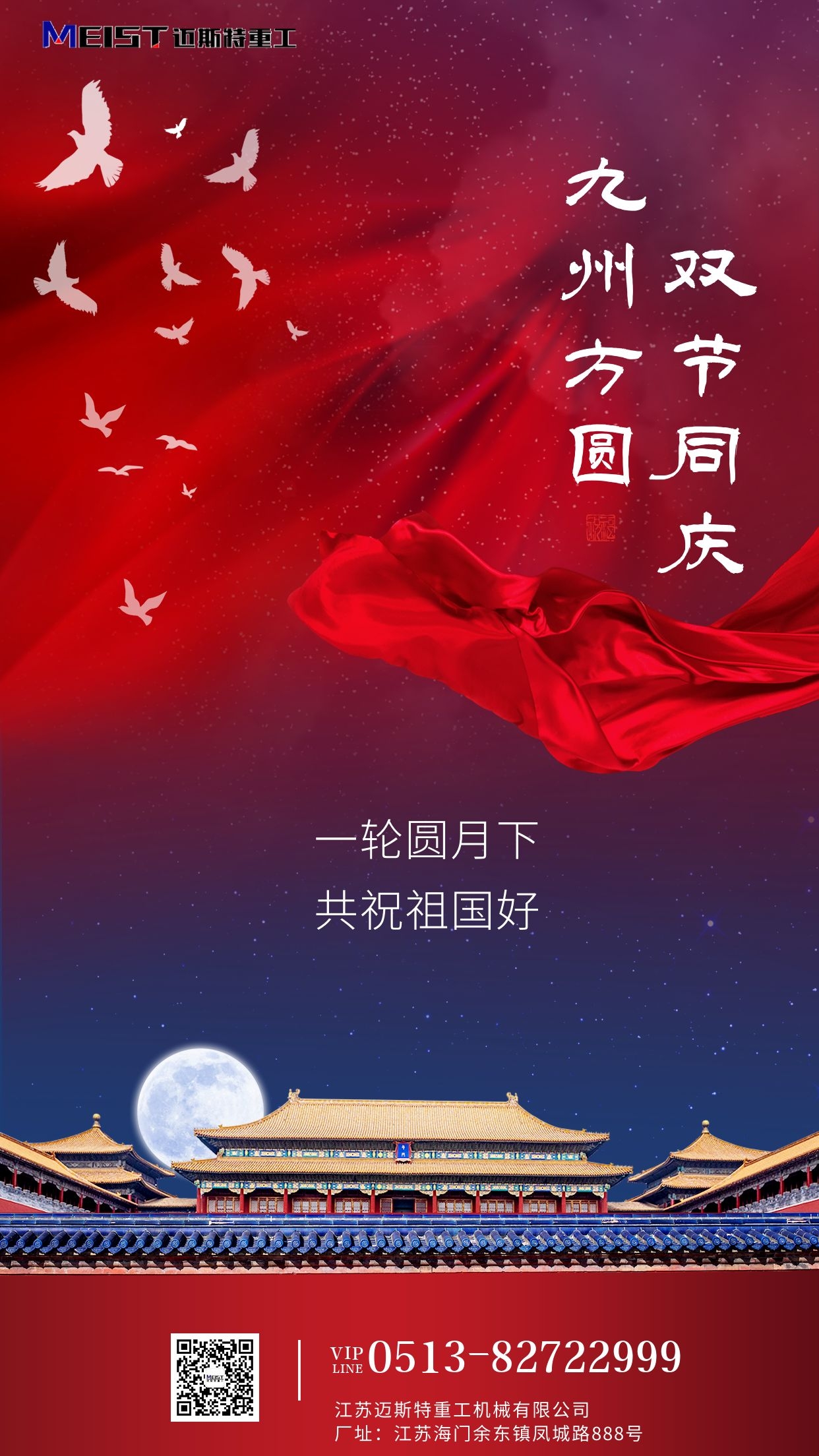 您的當前位置:主頁 > 新聞中心 > 公司動態 > 邁斯特重工破碎機廠家祝全體客戶雙節快樂!