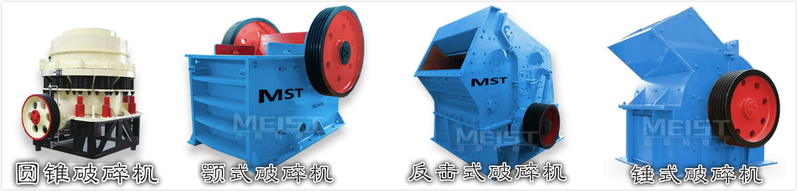 (2)中細碎設(shè)備:多采用圓錐式破碎機、反擊式破碎機、錘式破碎機